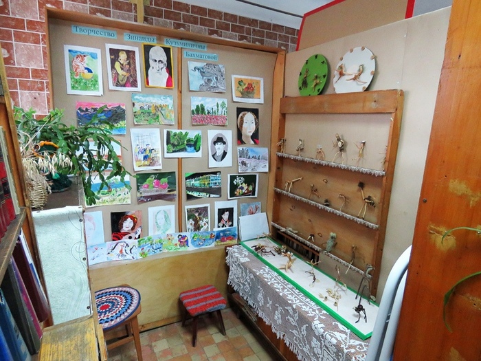 У входа - старые часы чуть ли не местного же производства, работающие однако чётко, только заводить их нужно раз в неделю. Вся экспозиция собрана в одной комнате, но по разнообразиею своему достойна полноценного краеведческого музея:
