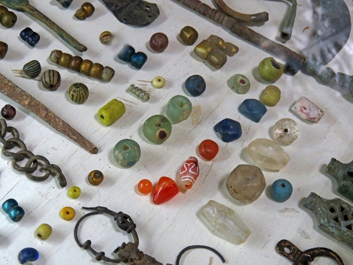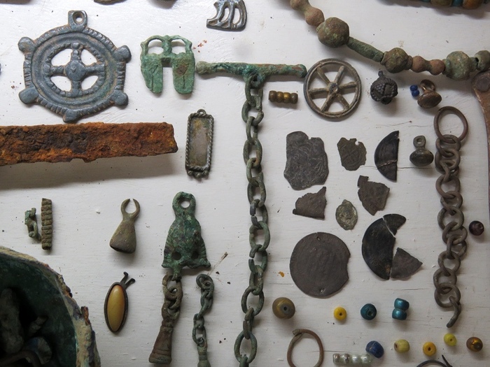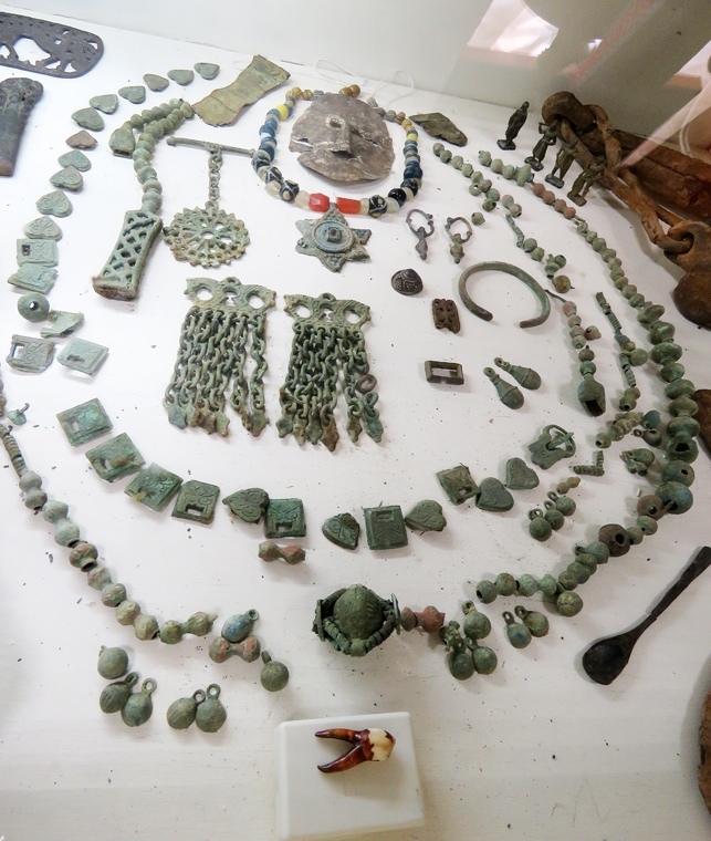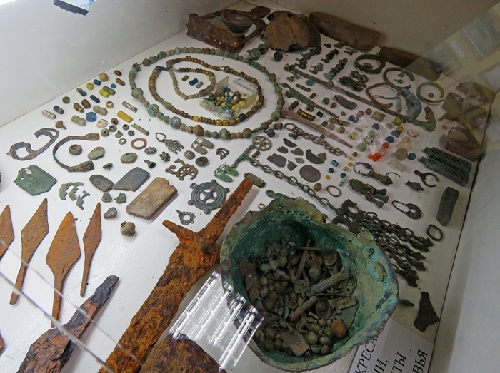 А напротив них - амулеты звериного стиля, украшения пермяцких селянок, ржавые мечи из тьмы веков: