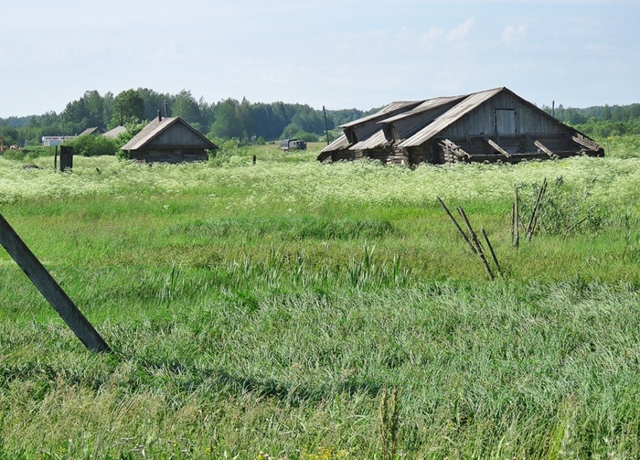 Густая трава колышется на тёплом ветру, в жарком воздухе жужжат мухи... В обескровленной Пожве всё кажется каким-то эфемерным и нереальным.