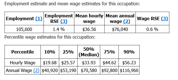 Для справки, данные о зарплатах психологов в США в 2015 году со страницы