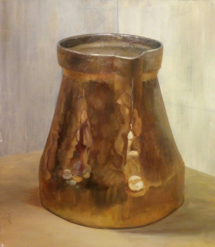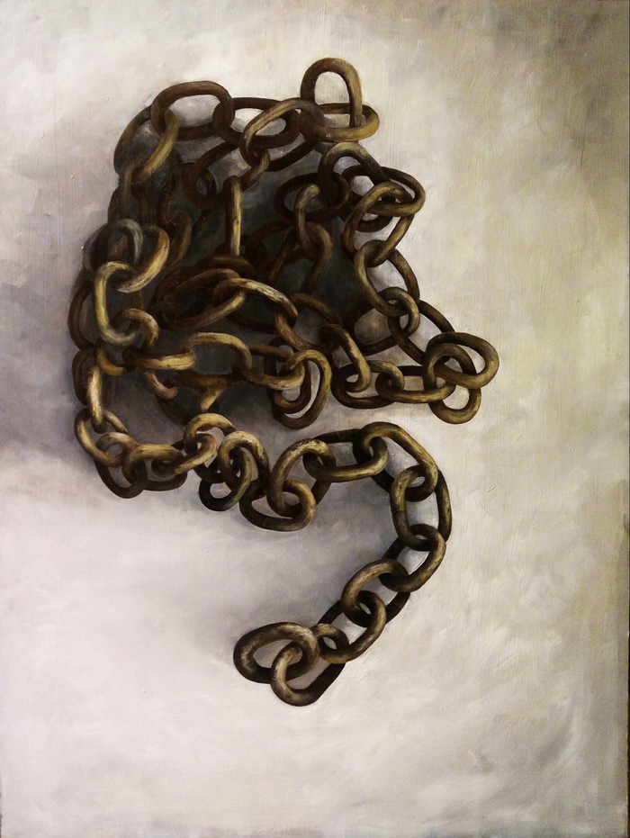 И тут я вспомнил про рисование, и как с самого детства я уделял внимание всяким мелочам, будучи очень терпеливым, я мог часами разглядывать муравьев, трещины в грязи, разбирал сломанную технику, что бы посмотреть на все шестеренки что внутри, и понять, как это работает. Было решено, надо начинать рисовать! Мой отец с радостью предложил мне объяснять что, куда и зачем. И вот я с кучей гипсовых геометрических тел, голов и носов, закрылся в квартире, используя подсказки своего отца, интернета, и книг, стал изучать азы рисования: как провести ровную линию из точки А, в точку Б, от руки. (это я скажу было нелегко). Отучился я дома около полу года, испортил не одну сотню ватманов, потратил немало нервов, но нарисовал большой графический натюрморт из бытовых предметов, и переключился на головы. Радость и гордость за себя не описать словами. Далее было решено, что надо заниматься в группе, и поступил я в школу рисунка и живописи. Там проучился год и загорелся идеей нарисовать гигантский рисунок карандашом, но матушка лень всегда рядом с нами. Перейдя на второй курс, мой преподаватель поставил передо мной задачу - нарисовать зубило на большом формате . И тут меня переклинило, я увидел все детали в этом предмете, весь его космос, всю его историю, все что с ним происходило. Я был поглощен этой идеей! Далее пошел пластиковый стакан, из которого мы пили шампанское на новый год нашим коллективом. Кофейная турка в которой однокашница варит кофе. Кирпич из под ванной Гали, который у нее лежал с неизвестных годов. банка солидола, лежавшая на работе с советских времен. Во всех этих предметах я видел прекрасное и хотел показать это людям. Но все идеи, когда нибудь заканчиваются, и ко мне пришёл кризис, в голове была одна пустота и огромное желание найти предмет. Как-то вечером выхожу я на улицу, и вижу, что дорожные работники, оставили канистру по которой видимо проехался каток, я подумав, что за чудо, схватил ее, и побежал быстрее рисовать эту замечательную находку. Закончив канистру, появилась идея нарисовать цепь, с большим количеством звеньев, на ее поиски ушло 2,5 недели, то цепь была не та, то она была слишком новая, я достал всех друзей, облазил все места, где бы могло валяться такое доброе. И вот у брата на даче, в гараже, я увидел именно ту самую цепь. Я радостный, перемазанный ржавчиной везу ее в Москву и начинаю рисовать. Цепь я закончил, и на данный момент ищу другие предметы, а серию работ назвал: «Красивое в некрасивом». Казалось бы, в чем суть рисовать никому ненужные предметы, которые были в использовании, почему бы не начать рисовать лепнину, или вазу, «ТОЖЕ ВЕДЬ КРАСИВО!». Все очень просто, я пытаюсь передать то, что окружает нас в современном мире, в повседневной жизни, чему мы не уделяем особого внимания.
