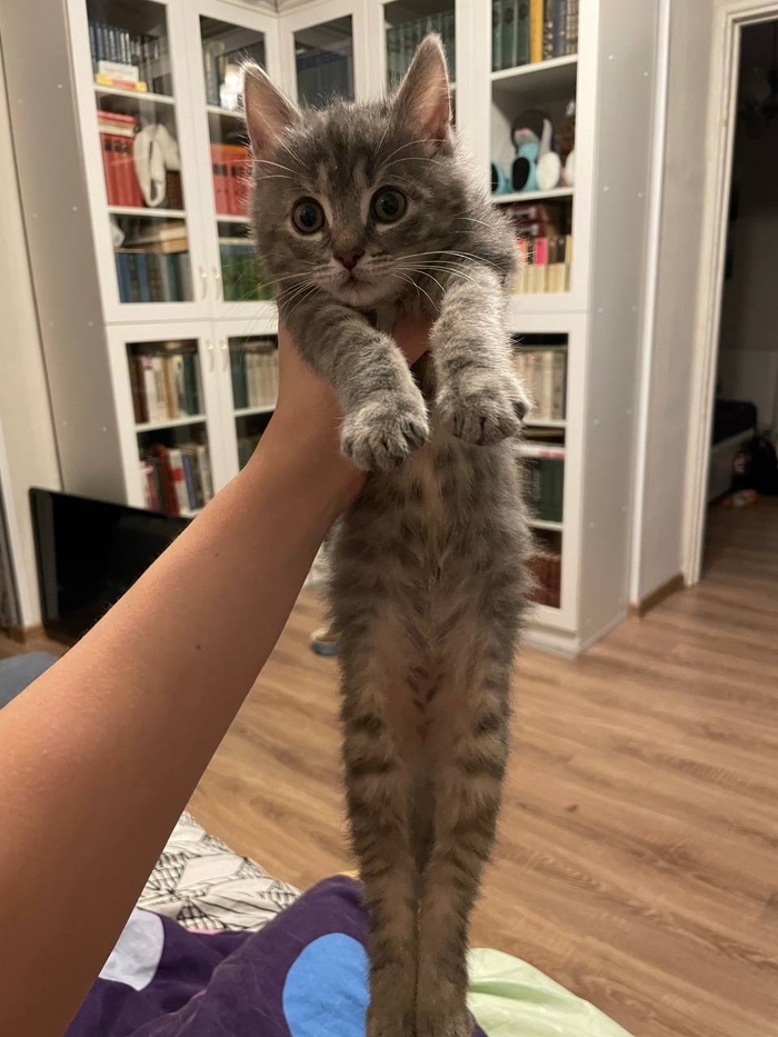 Собственно, ищем новый дом и любящих хозяев для этой прелести. В разумных пределах по Москве и области готов довезти, поможем советами (отлично знаю, как сложно и непонятно с первым котом), деньгами на вторую прививку и стерилизацию. Единственное условие - наличие или установка антикошек на окна