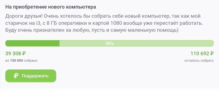 Очередной попрошайка, а именно @mazlow, что собирает 110т.р. на новый комп