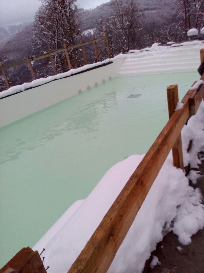 Пока я сочинял предыдущий абзац гидроизоляция продолжала сохнуть. Делает она это долго. В первые сутки недопустимо попадания воды на поверхность. Ура! У нас есть навес! Нам не страшен проливной дождь! В итоге ждать надо прилично. Где-то у производителя было написано, что наполнять чашу водой можно через две недели, не могу найти сейчас. По моему опыту летом надо хотя бы 4 дня. Затем наполняем чашу водой и ставим метки. Если есть утечки, вы их увидите в первые сутки. Можно подождать 3-4 дня если есть время. Но материал хороший, в умелых руках проблем не возникнет. Сливаем воду и готовимся к следующему этапу. Жаль нет годных фото всех этих этапов. Они мне не нужны были особо, не храню.