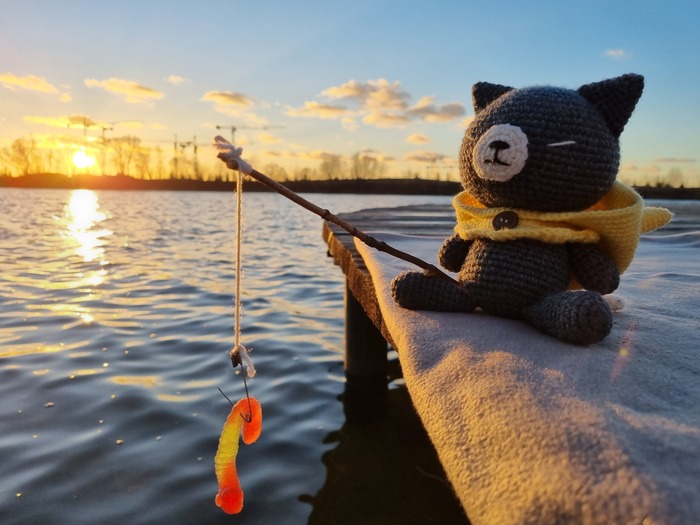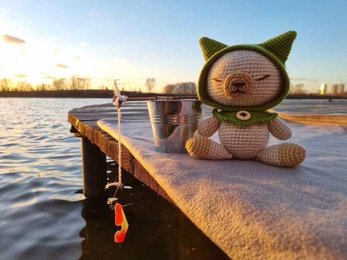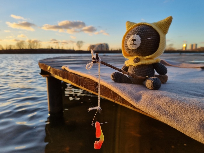 Для того, чтобы пофотографировать в этот раз этих котиков (по мне, они заслуживают самых интересных фотографий), я вывела их на рыбалку. Пускай погода стояла морозная (в тот день выпал первый снег), фотографий котиков я принесла домой больше, чем обычно. Хоть Котик Робин и самый сложный в исполнении, пока его внешний вид является для меня самым интересным из моих последних авторских описаний - эти котики мне напоминают средневекового Робин Гуда или какого-то покемона.