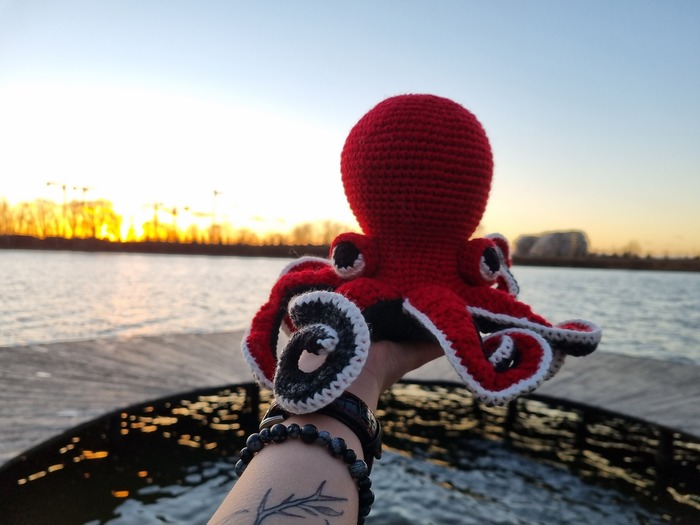 В моем портфолио связанных игрушек чего только нет - Котики, Зайки, Аксолотли, Бафометы. Но нет ни одной игрушки, связанной с морской тематикой (кроме масеньких осьминожек).