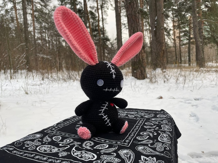 Я очень люблю нестандартные вязанные игрушки. Котики, зайки, мишки и прочая милота меня привлекает не так сильно, нежели что-то, что можно назвать поделками из мастерской ведьмы. В начале моей вязательной деятельности, которая началась в районе года назад, я связала первого Фурфура, я решила скинуть фотографии Маше, и он ей достаточно понравился, что она решила его немного "доработать" - итоговый вариант Вы видите на фото. Улучшенная версия этого Зайки занимает отдельное местечко в моем сердечке, так как именно с него началась моя любовь к "страшным" игрушкам.