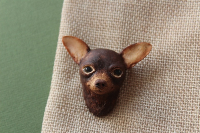 Портретная брошка в виде любимца той-терьера на заказ.