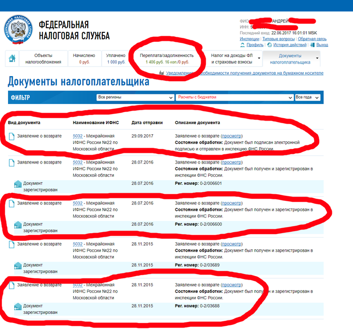 Собственно из за кривости сайта ФНС дважды уплатил транспортный налог. Уже 2 года не могу вернуть переплату, хотя на том же сайте при подаче заявления сказано 30 дней: