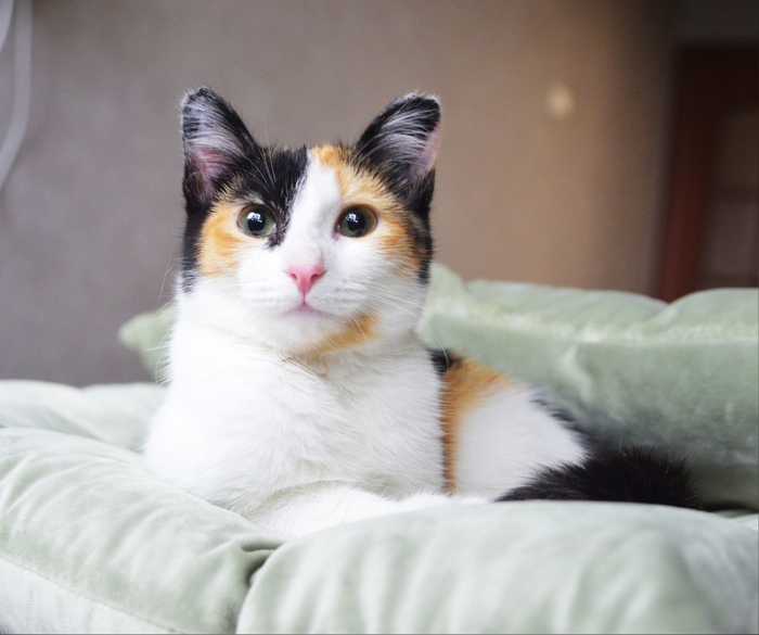 Малышка была найдена в подъезде 18.01 в п.Буланаш моими родителями, везде были размещены объявления о потеряшке и меньше, чем за 12 часов объявилась хозяйка. Для меня это был повод для радости. Но по итогу нашей долгой переписки было сказано, что кошка им не нужна. Имя из прошлой жизни у кошки — Лиза, но оно осталось в прошлом и теперь ее зовут Юстина, ей полгода.
