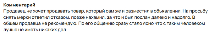 О кидалове. В смысле продал другому, поднял цену, передумал продавать, не ответил, отказался снять фото. Это жизнь. Вы поступите также. Есть люди которых можно развести а есть люди которые столкнулись с разводом. Я из второго варианта. И будь вы хоть 1000% покупатель я не делаю фото или например как вчера ситуация.