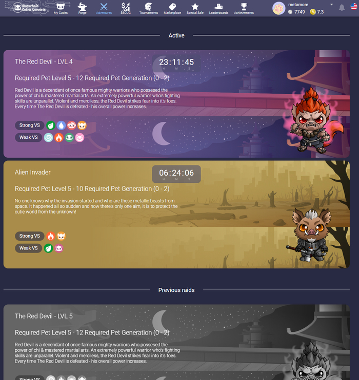 - Можно посылать кутиков в вышеупомянутые приключения для добычи опыта и предметов.