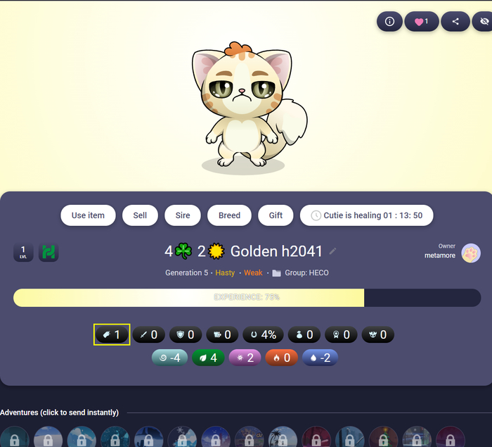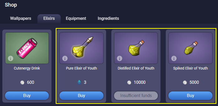 Повысить поколение кутика можно с помощью разных видов эликсиров молодости (Elixir of Youth), которые можно купить в Paw Shop или другом маркете. Самый козырный эликсир для поднятия до ген 1 и 0 только за криптовалюту.