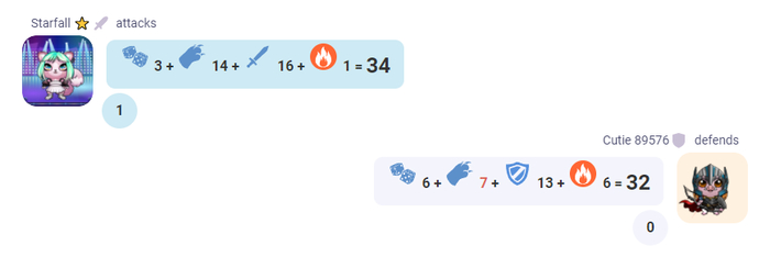 Суть боёв проста: бросок кубика d20 + показатели твоего кутика + возможные баффы/дебаффы, которые сравниваются с броском врага.