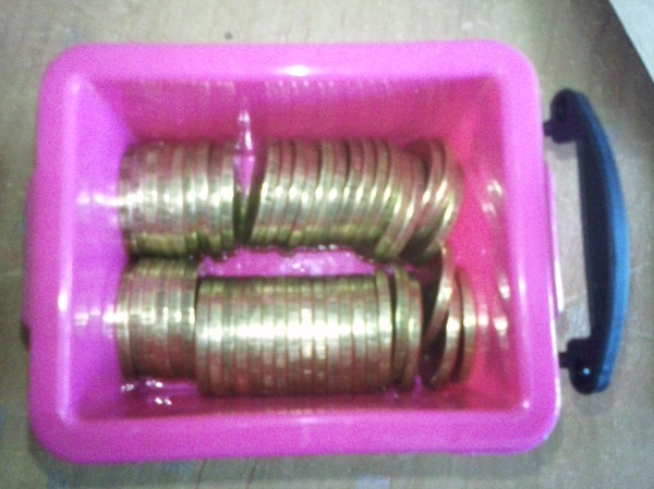Боялся, что монеты могут снова потемнеть, поэтому покрыл лаком для волос и аккуратно уложил на хранение до дня рождения