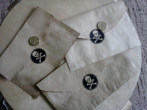 Вот и всё. Куски карты разложены по конвертам, а для "пещеры" состряпал и вырезал вот такого пирата, чтобы он "держал" один из конвертов
