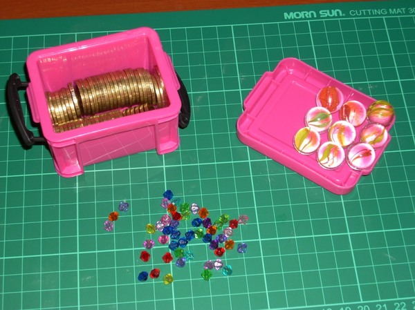 В довесок к золоту в ларец будут добавлены стеклянные шарики и "самоцветы" (для браслетиков и т.п.)