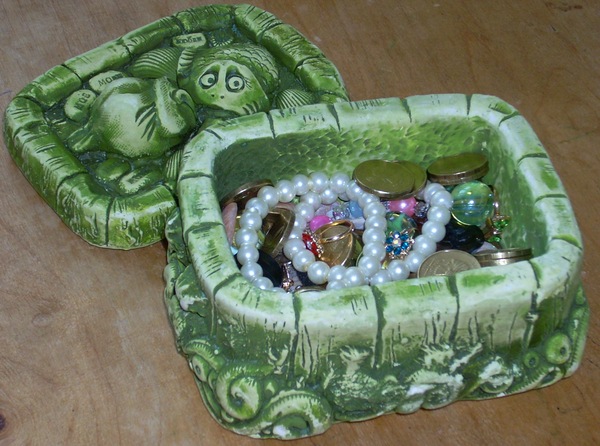 Тем временем с берега чёрного моря приехал ларец для сокровищ. Красивый, но очень хрупкий (из гипса), наверное его только на то и хватит, чтобы откопать. Но ведь старые сундуки и должны быть истлевшими, а сокровища яркими!