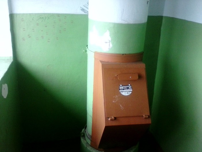 Это закуток действующего мусоропровода. Довольно чисто, но специфический запах мусорки присутствует
