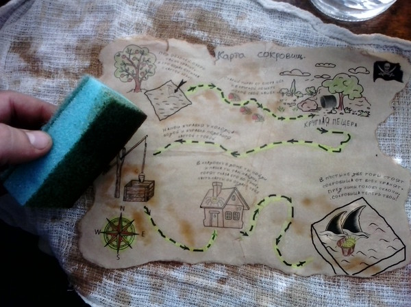 Далее карту решил "состарить" с помощью кофе