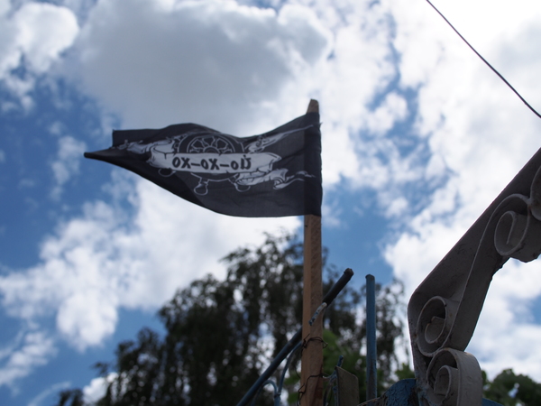 Получился флаг для пиратов, потерпевших неудачу в битве и с побоями, и стонами возвращающихся в логово.