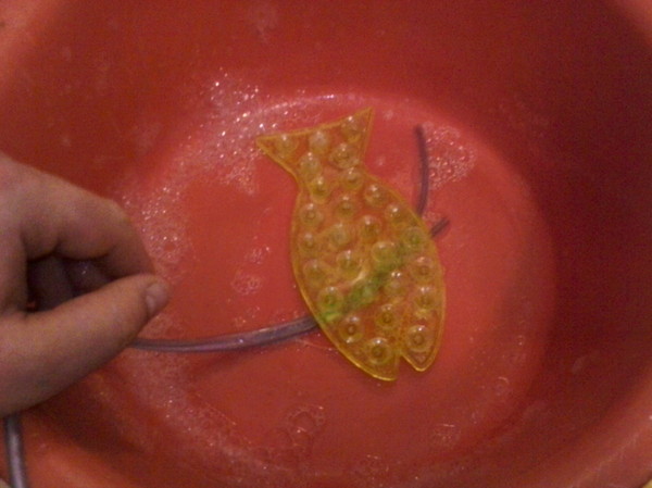 Для большего эффекта (чтобы интенсивнее пузырилось) из полиэтиленовой трубки сделал кольцо с отверстиями (рассеиватель). Трубки (шланги) от компрессора, к радости перфекциониста, вошли в рассеиватель плотно. Получилось криво, но функционально!