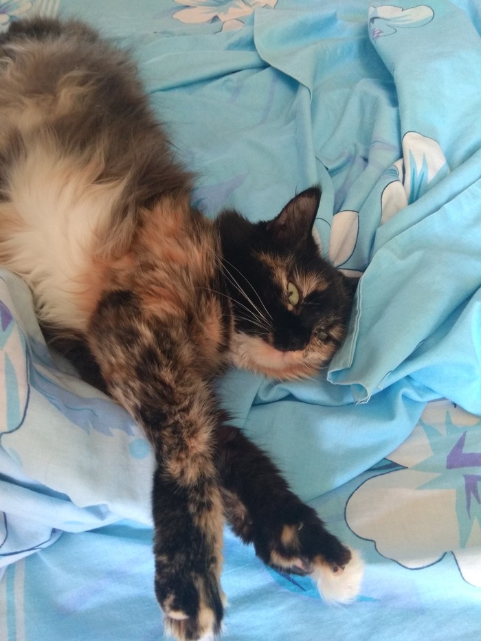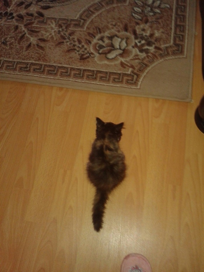 Взяли с улицы котёнком. На лоток ходить не приучали, сама и сразу, даже уговаривать не пришлось. Когда привезли в квартиру, та сразу же пошла знакомиться с детьми. И, если, младшая сразу в неё влюбилась, то старшая дочь сказала: "Фу, заморыш, пошла вон." На что наша Манька сказала: "Как это меня не любят, как это пошла вон?" И без зазрения совести залезла по старшей дочери, ничуть не смущаясь визгов ребёнка, так как коготки-то уже были и весьма острые, ей на плечо и легла спать. Так у нас появился ещё один член семьи, которому дозволено буквально ВСЁ. У неё есть даже свой стул на кухне за обеденным столом. Нет, со стола она ничего не берёт, специально проверяли, сбрасывает на пол и там ест. Но посидеть за ужинов всей семьёй - это святое.