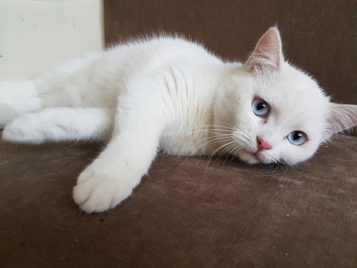 Этого милого котика звали Тоша. Очень умный и послушный. Помесь ангорки с дворняшкой. У него гетерохромия, но он не глухой. На первом фото ему 3 мес.