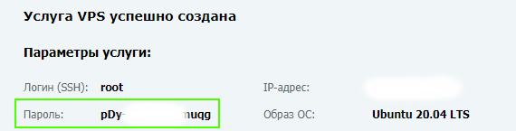 Либо при создании VPS пароль высылается по электронной почте, указанной при регистрации в хостинге: