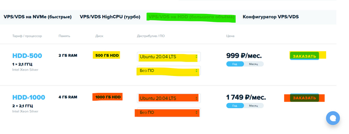 С другими вариантами хостингов можно ознакомиться например здесь poiskvps.ru, там уже заданы фильтры по стране - Россия, типу диска SATA, объему памяти и количеству ядер процессора. Можно убрать страну, если вас не пугает использование хостинга с размещение в другом государстве, то это расширит список доступных вариантов. Для всех хостингов процесс установки одинаков, есть лишь небольшие отличия в интерфейсе.