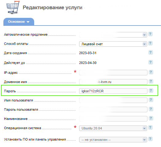 После оплаты аренды сервера, создастся конфигурация оборудования и в ней нас интересует два пункта.