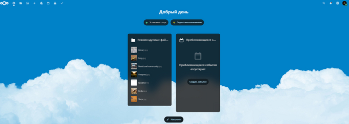 Далее открывается непосредственно веб интерфейс облачного хранилища, можно начать пользоваться облаком — создавать пользователей, назначать права им, ставить дополнительные приложения, вести канбан доску и т.д.