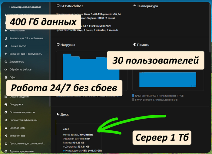 Опуская дальнейшие метания, мой взгляд пал на решение Nextcloud. Оно привлекло открытостью ПО и возможности развертывания на собственном сервере. Перечень его возможностей довольно впечатляющей, вот одни из основных: