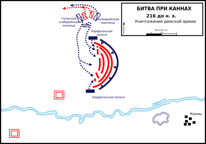 Приветствую вас. Битва при Каннах представляет собой сражение, наиболее приблизившееся к своему идеалу – не только разгром, но и почти полное уничтожение вражеской армии.
