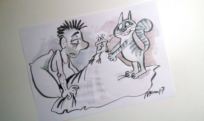 - Ой! Тьфу-тьфу-тьфу - мальчик три раза сплюнул через левое плечо и показал коту две фиги.