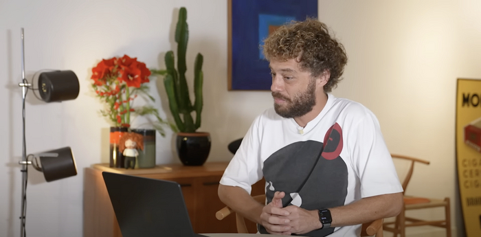 Все ролики сделаны в ранее незамеченных на видео интерьерах, интервью записываются по видеосвязи. Сравним с его привычным фоном: