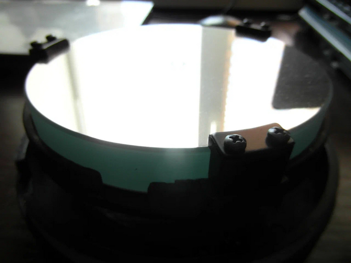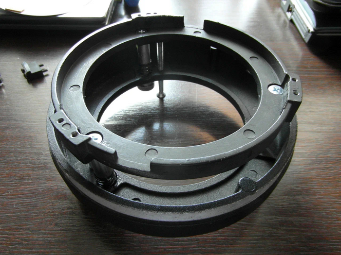 И сделал удлинители, на которых приподнял зеркало в оправе на 4 см. Операция страшная, так как зеркало - очень важная часть телескопа. К нему даже прикасаться нельзя, а любая царапина будет способствовать искажению картинки. В общем глаза бояться, а руки делают: