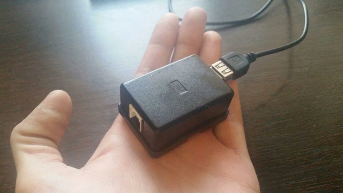 С помощью него наконец-то удалось начать рулить монтировкой телескопа с компьютера, это был великий день! :) Сделал плату и собрал все в защищенном корпусе, получилось так: