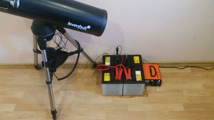 Вот после этого уже удалось поймать фокус. Отлично, все готово: зеркальная камера подключена, ноутбук старенький без батареи - готов, телескоп готов. Заряжаю аккумуляторы (нужно же питать телескоп, ноутбук) и вперед, в ночные поля: