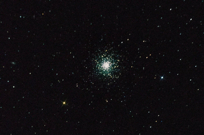 На таком типе монтировки нельзя делать фотографии с длинной выдержкой, так как будет сильный смаз на фото. Для длинных выдержек нужна экваториальная монтировка. Но снимать планеты и какие-то яркие объекты можно, вот пример скопления M13: