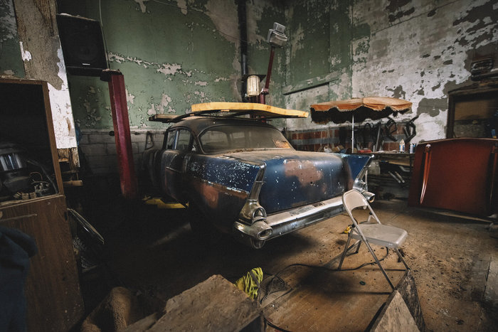 В соседнем со спортзалом помещении разместился Chevrolet 1939 года. Его начали превращать в хот-род, но закончить проект не сумели — мастерская закрылась несколько лет назад из-за серьёзной травмы, полученной её хозяином. Без присмотра владельца бизнес остановился, а машины по каким-то причинам так и остались в спортзале.