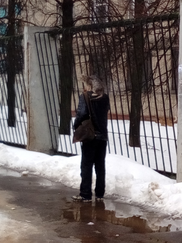 6 miniDLC 9 лет назад Выгул котейки Встретил такого мужечка, уходя с работы. Кот чувствовал себя вполне комфортно,переберался с одного плеча на другое. Показать полностью 2 [моё] Кот Мужчины Прогулка Длиннопост