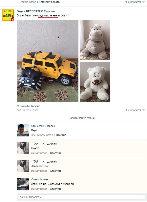 642 minifnatik Радиоактивные игрушки 9 лет назад Показать полностью 1 [моё] ВКонтакте Игрушки Радиоактивность Комментарии Саратов