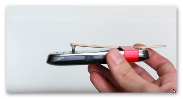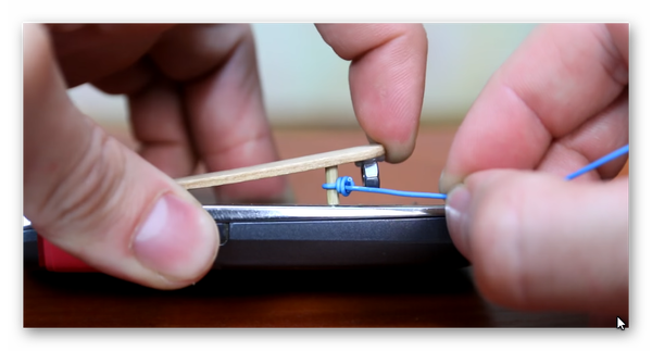 Закрепляем на телефоне палочку таким образом чтобы гайка находилась на кнопке быстрого вызова