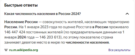 Но для полноты картины давайте посмотрим на современные данные численности населения России на 2024 год.