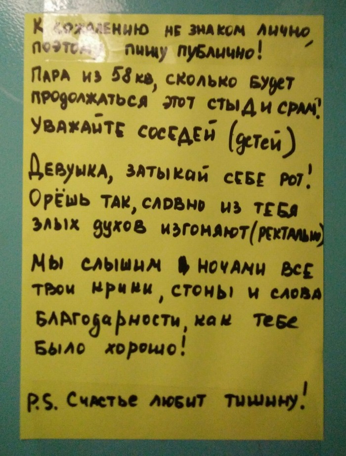 1352 mishulina 7 лет назад Наверное у нее муж пикабушник Сегодня обнаружили это в лифте. Показать полностью 1 [моё] Соседи Негодование Зависть