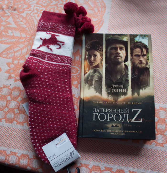 И под сладостями я нашла суперские новогодние носочки с оленями и бубончиками, и книгу! Именно эту книгу я хотела купить перед Новым годом, но меня отговорили:) Я ее долго листала и рассматривала картинки, пока не подошел консультант и не предложил свою помощь, видимо, сильно подозрительно я выглядела:) Супер, в общем, обожаю читать про приключения среди дремучих лесов :)