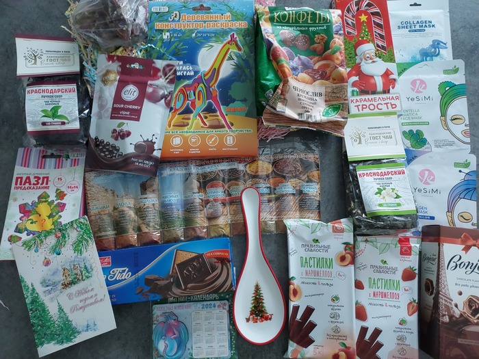 И сладости, и пазлы, и специи, и чай, магнит, маски, все подобрано с душой и очень меня порадовало)