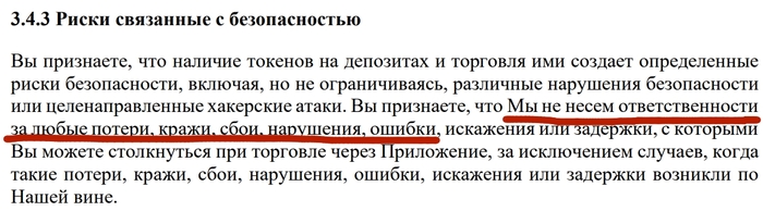 То есть у меня могут украсть токены с платформы - и никто за это не несет ответственности. Отлично, идем дальше.