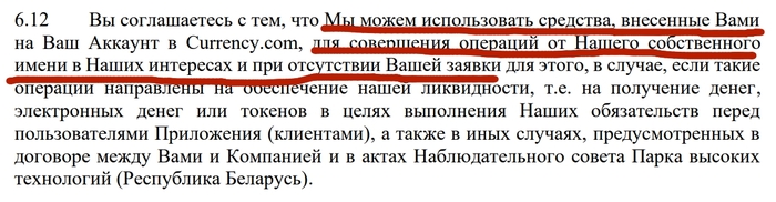 Ну тут вообще красота. Завтра выходит например некий акт Наблюдательного Совета Парка Высоких Технологий Республики Беларусь о изъятии всех активов - и я остаюсь ни с чем. Про использование моего аккаунта без моего разрешения - без комментариев.